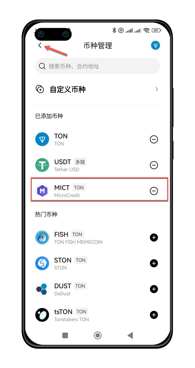 $MICT,在钱包余额中能看到。