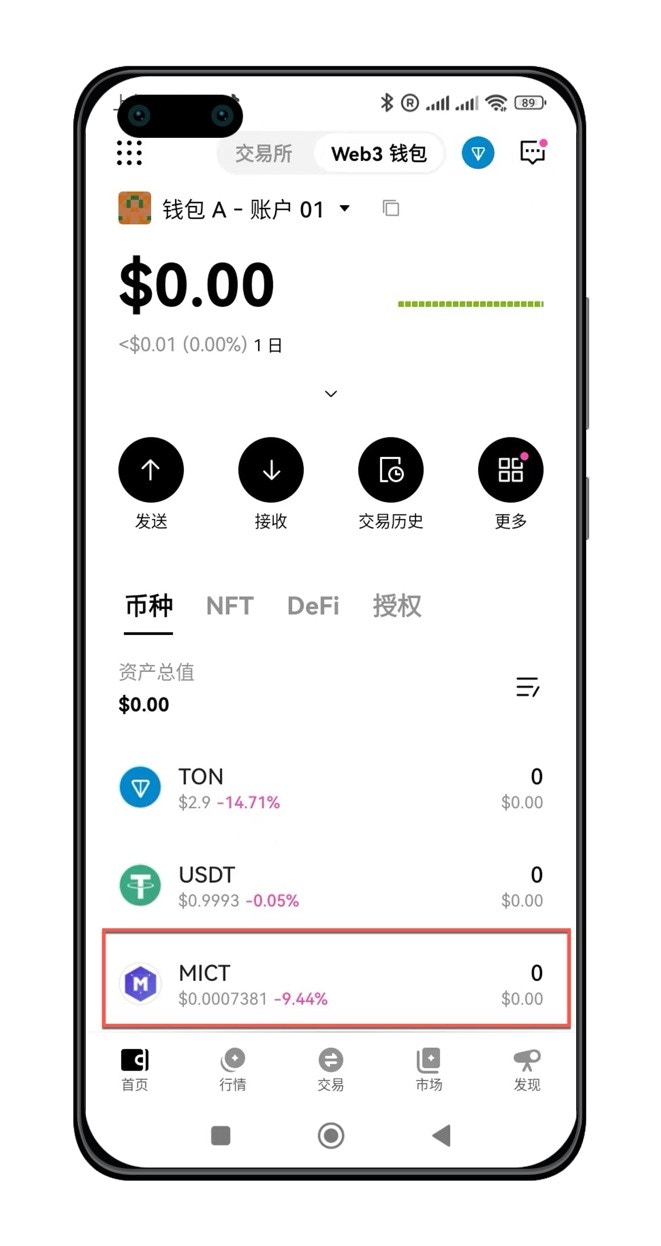 确认按钮后,就可以看到$MICT代币了。